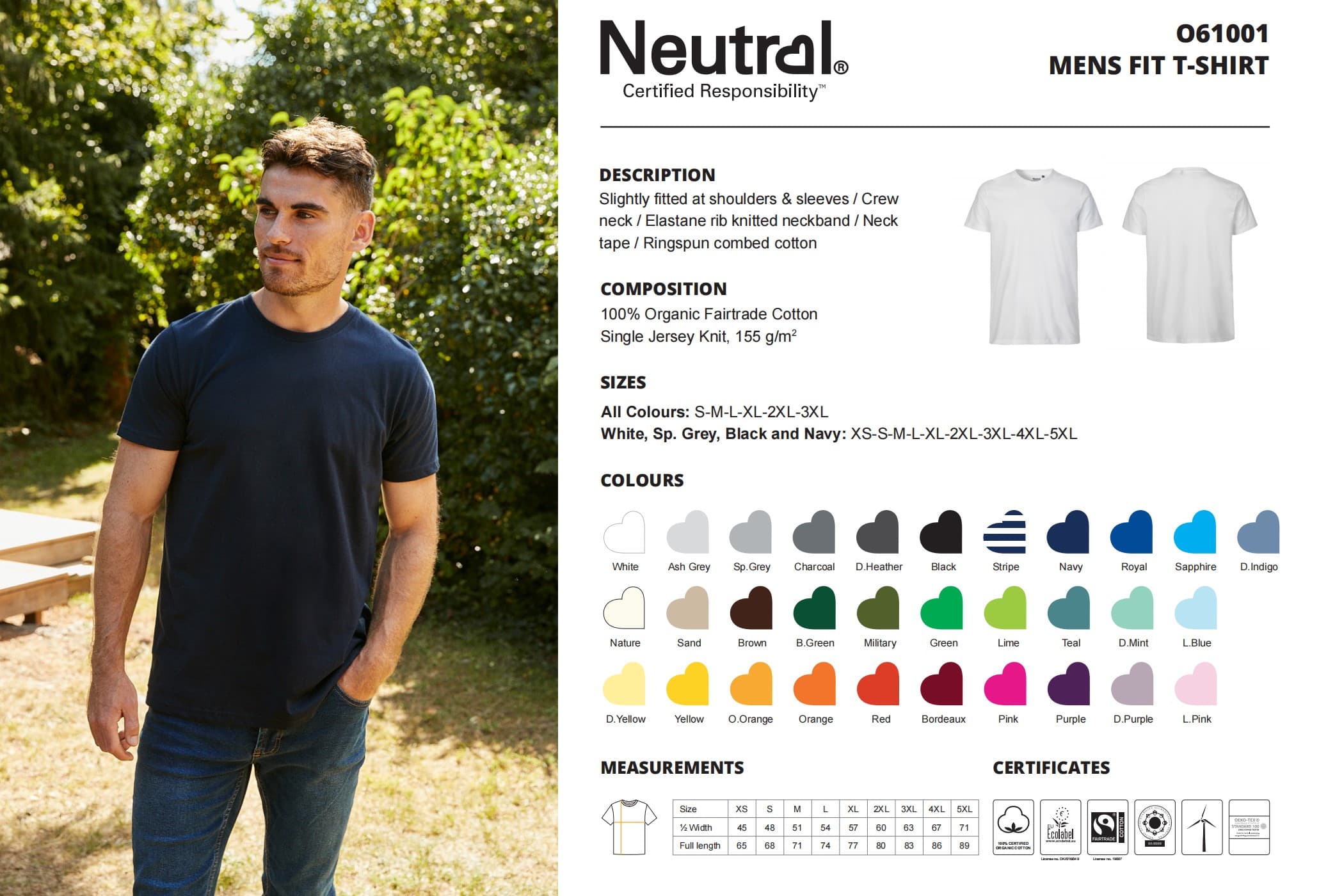 For now we have decided to go with the Neutral®️fit Mens Shirt in sizes S, M, L, XL and the colors black and white. You can find more details about the T-shirt below: